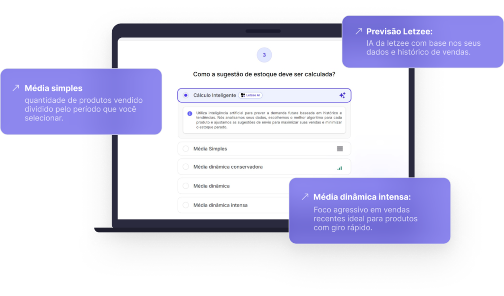 Nosso algoritmo de IA vai além da média simples, analisa diversos fatores, ignora picos de vendas atípicas e considera os dias que você ficou sem produto, entregando uma sugestão de envio fiel à sua demanda real.